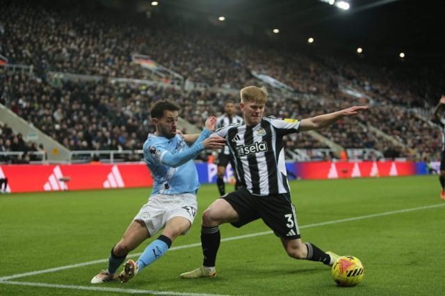 那就只能是纽卡的紧逼,和伯恩茅斯、利物浦的不大一样。当然,主队有地利(福登轻推底袋打偏),裁判和VAR也稍微向纽卡倾斜了两钱(福登射门瞬间被踹倒没捞到点球),这些都会对主队取胜有利。但纽卡主场的气势,以及紧逼的力度,都是曼城在之前不曾领教的。还记得3年多以前,纽卡如何在主场和曼城打了个3比3吧?当时那支纽卡,首发11人仍有若埃林通和吉马良斯坐镇中场,后防的舍尔也是本轮的主力。曼城有哈兰德、福登,以及离队的德布劳内和京多安。罗德里因伤赶不上这场,但在3年前,他妙传哈兰德打响了曼城反扑的发令枪。彼时,纽卡的锋线由“糙哥”圣马可西曼、威尔逊和阿尔米隆组成,宛如公牛闯入瓷器店,一度将领先优势扩大到两球。